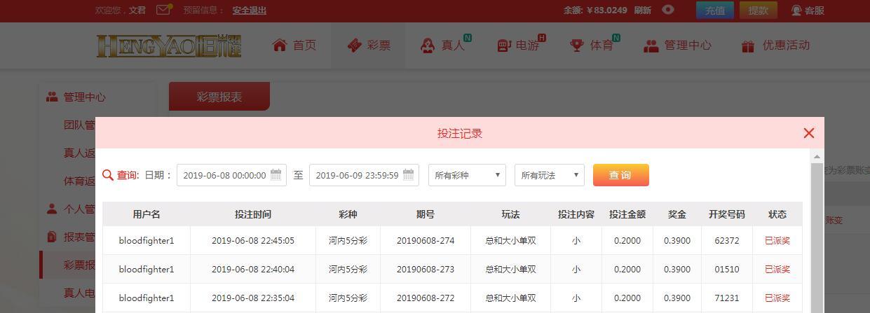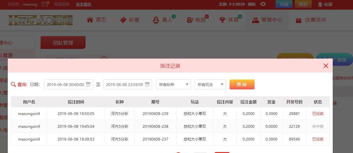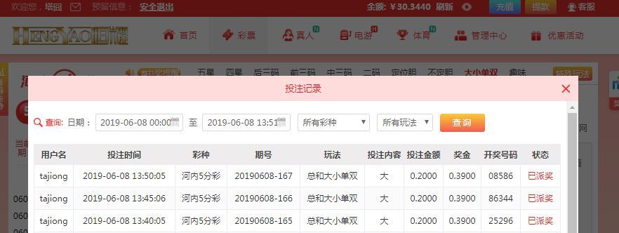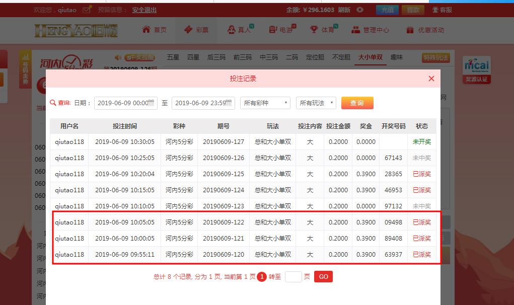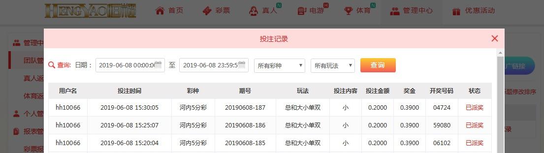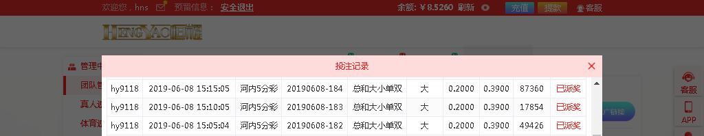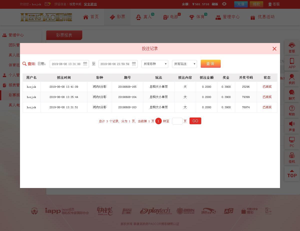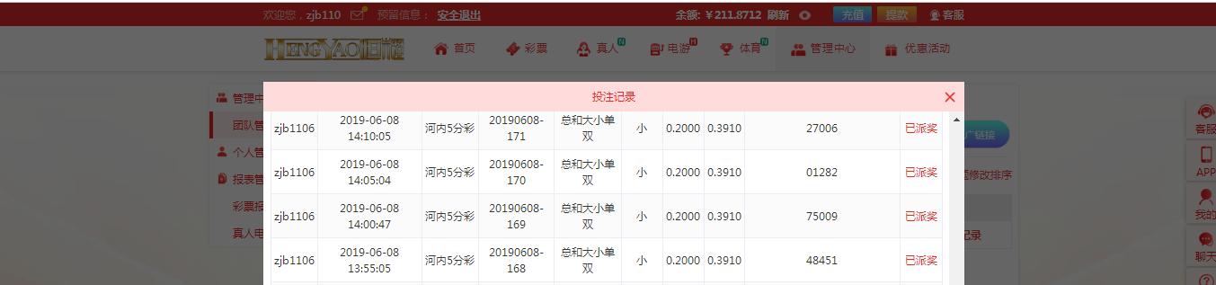 3,每天推荐连续3场的投注记录,下注限额最低二角。