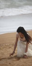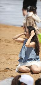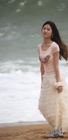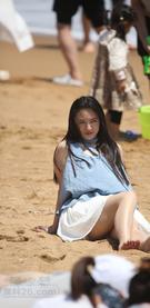 1583 池塘边专心喂鱼的美女,感觉是来钓大鱼的【
