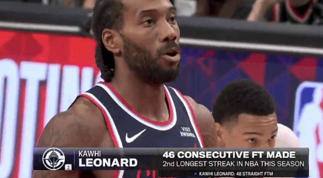[|篮球赛事] 伦纳德连续罚进52球本赛季最长,第二长也是伦纳德连续48个 |
