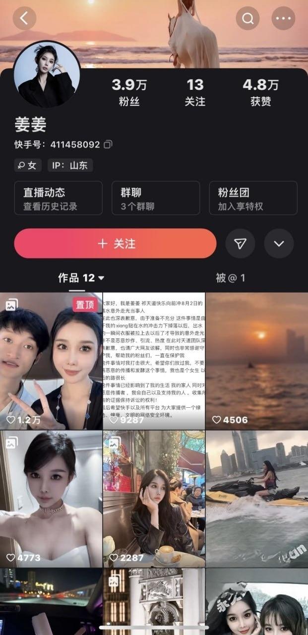 快手美女网红『姜姜』参赛山东济南快乐向前冲祁天道杯!意外落水露出奶头!绝对是炒作!
