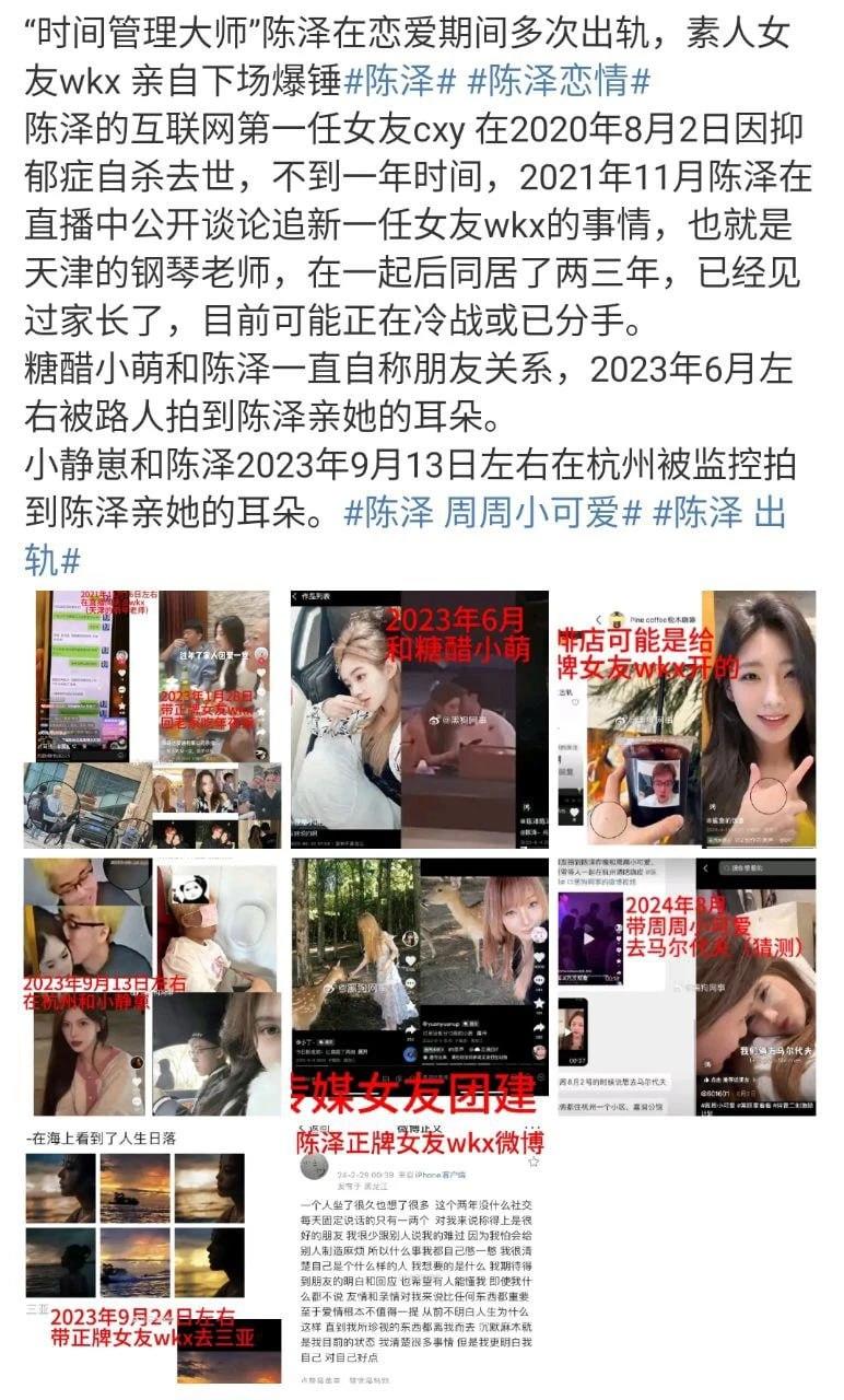 抖音网红陈泽 塌房被素人女友曝光出轨多位女网红