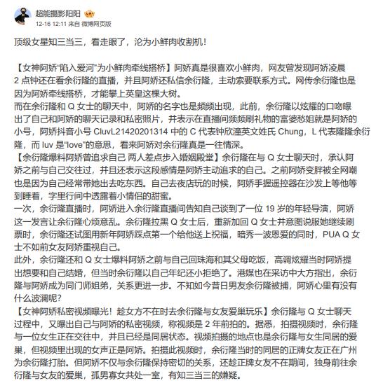 [名人黑料] 【爆料】钟欣桐阿娇 被曝知三当三 男方曝光阿娇私密照片及不雅视频 余衍隆因敲诈阿娇锒铛入狱! |