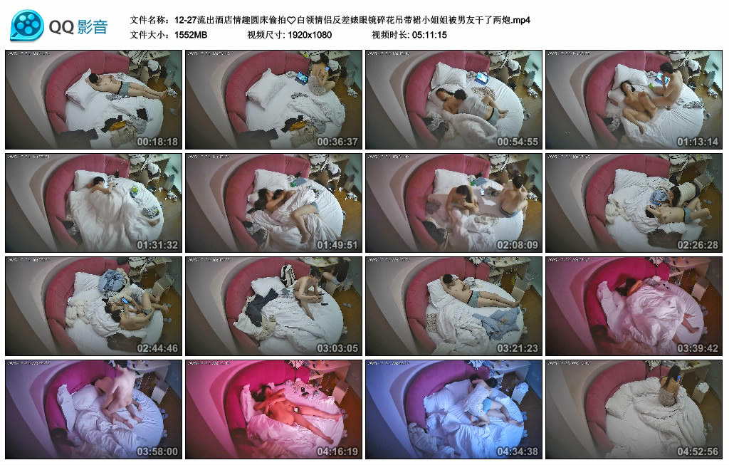 [猥琐盗摄] 12-27流出酒店情趣圆床TP❤️白领情侣反差婊眼镜碎花吊带裙小姐姐被男友干了两炮【05:11:15/KL】 |