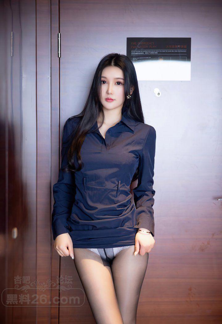 深蓝色西服短裙美女秘书黑丝高跟屁股翘【20P】