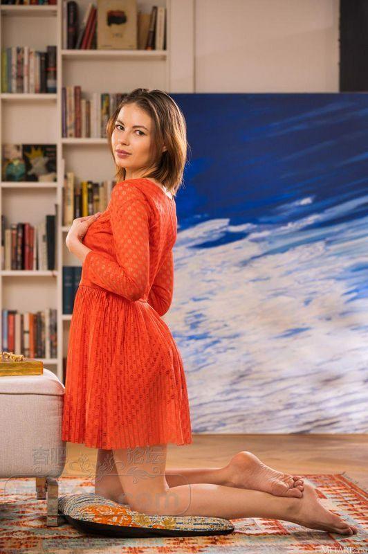 红色长袖连衣裙金色短发美少妇沙发上脱光跪趴式【21P】
