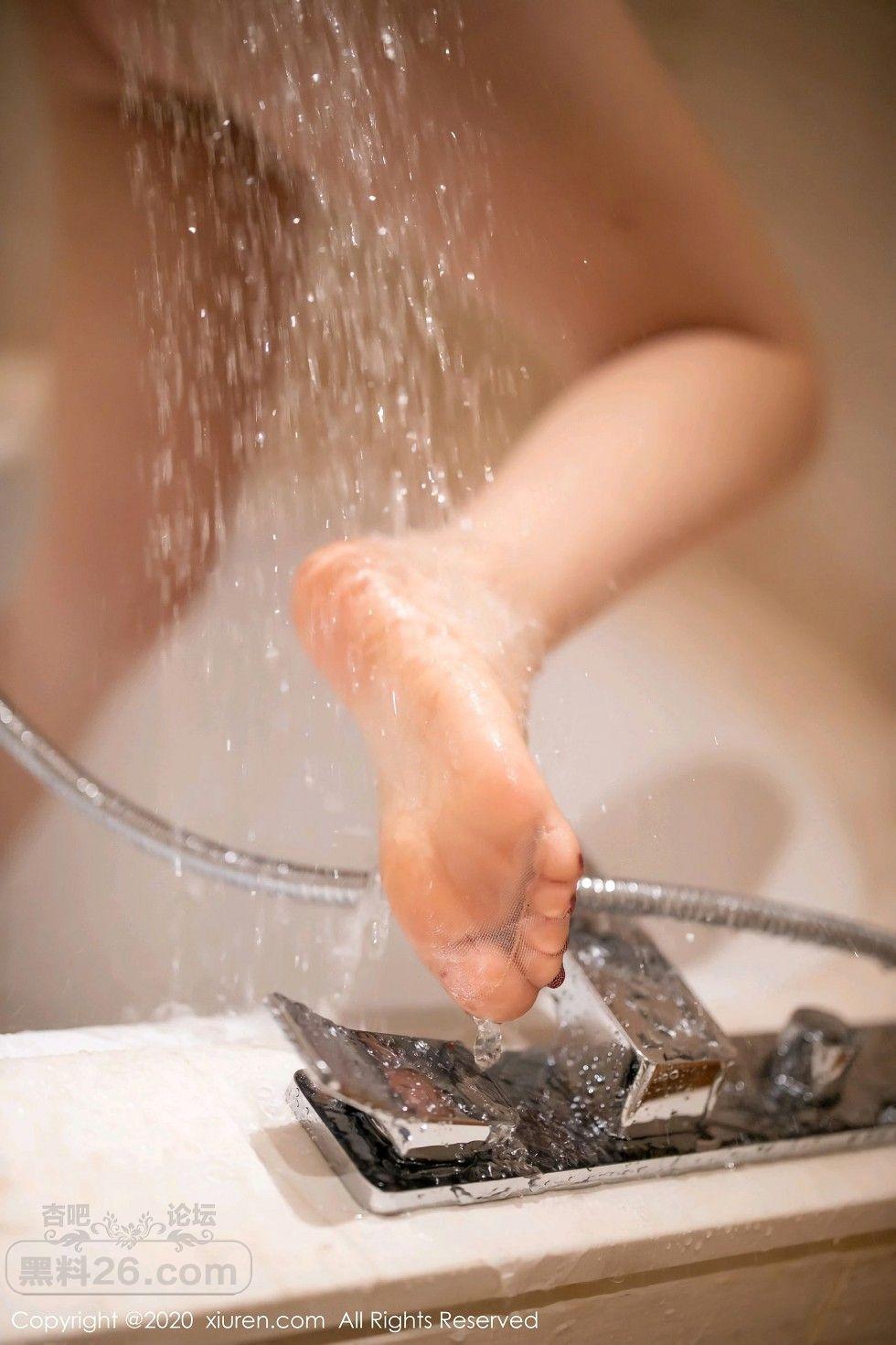 [美腿翘臀] 女神绯月樱-Cherry浴室白色吊带半脱露开档肉丝裤袜湿身诱惑写真【50P】 |