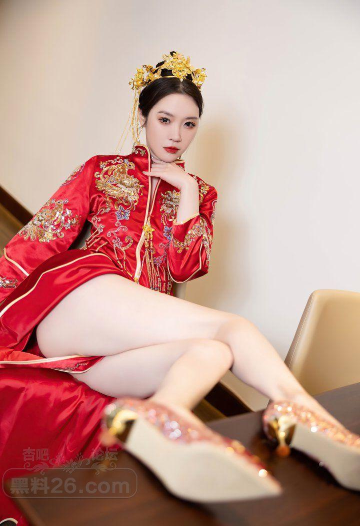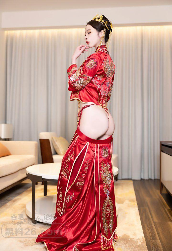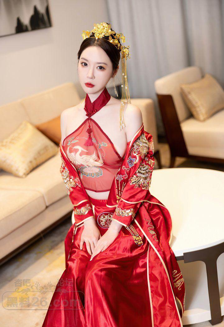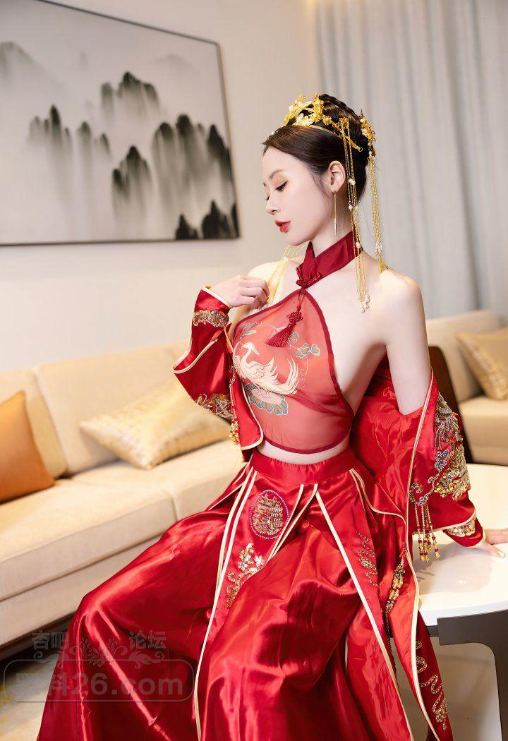 红色传统装美女新娘梦心玥婚房里宽衣解带【20P】