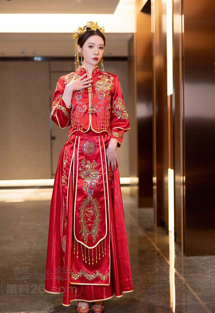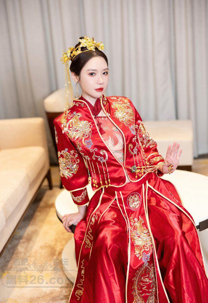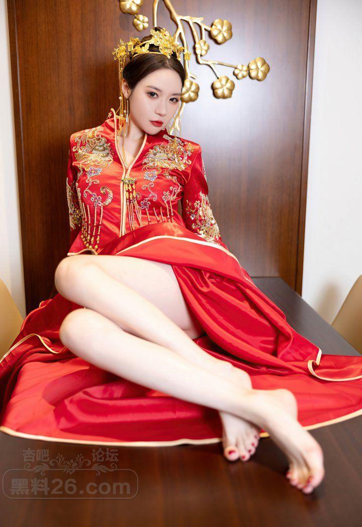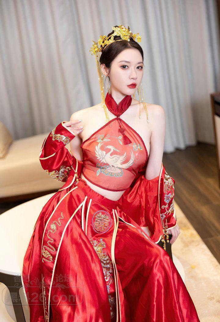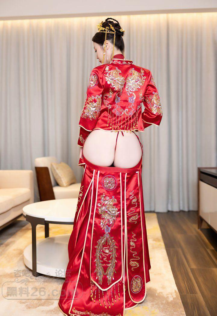 红色传统装美女新娘梦心玥婚房里宽衣解带【20P】