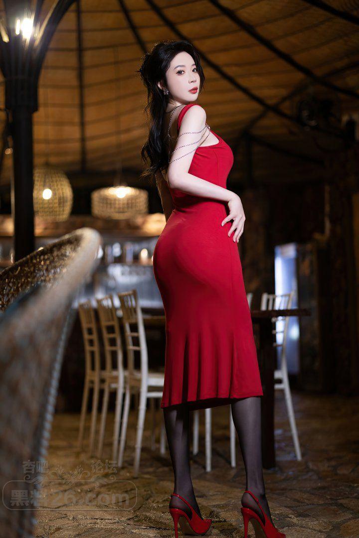 性感女郎梦心玥红色长裙黑色吊带丝袜屁股翘【29P】
