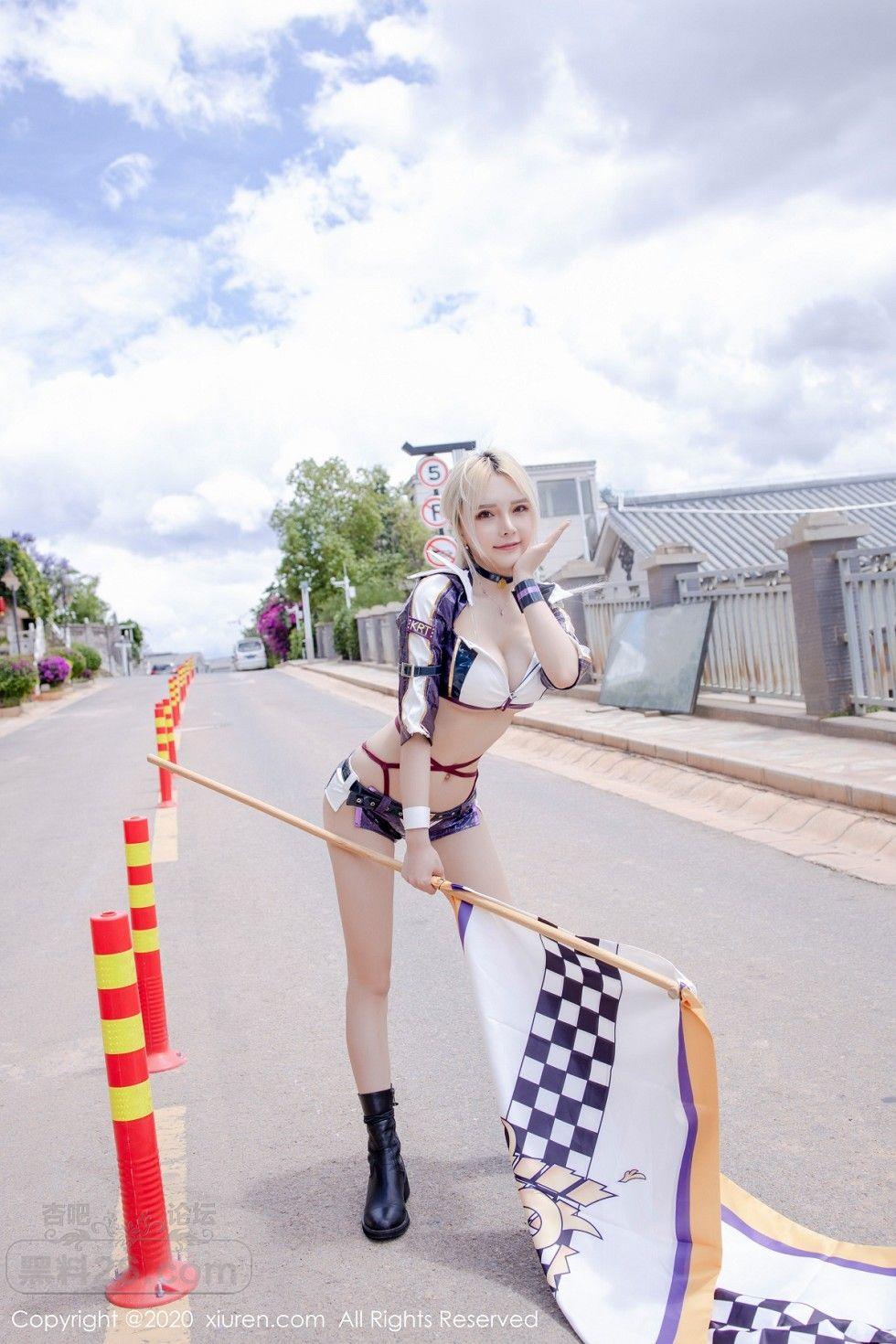 [美腿翘臀] 嫩模淼淼小姐姐呀室外赛车女郎主题半脱制服露红色内衣诱惑写真【36P】 |