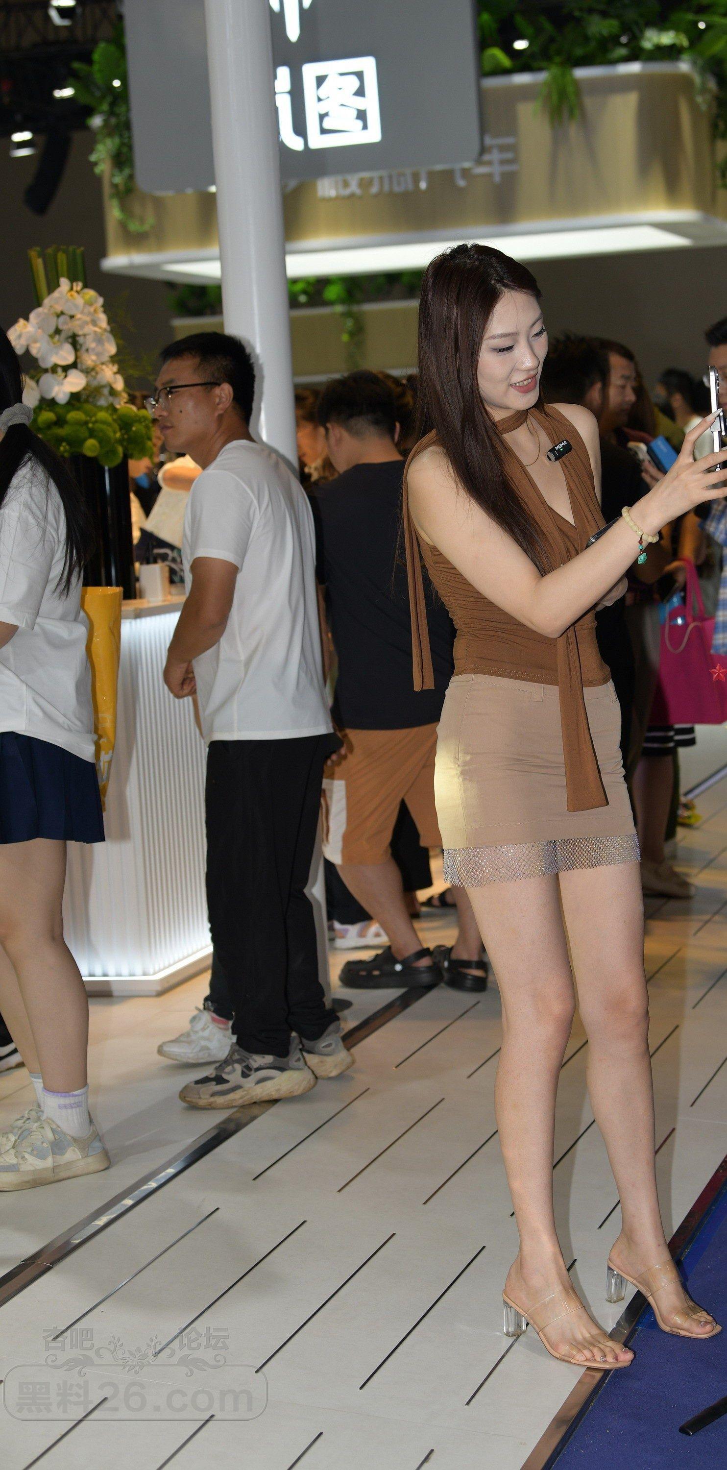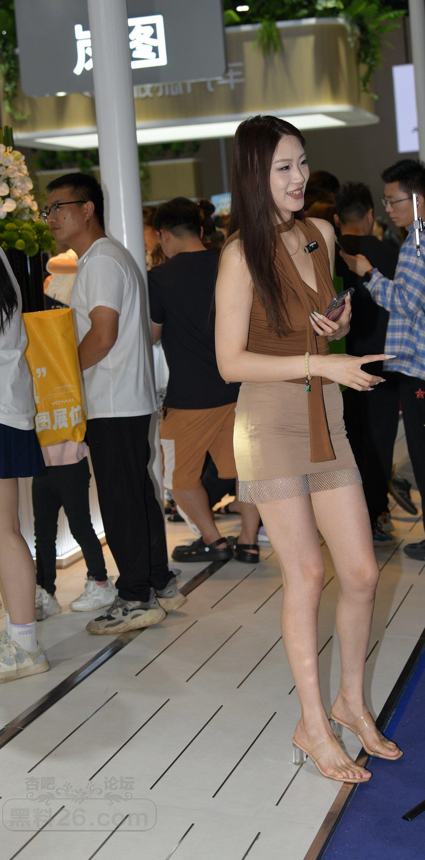 棕色背心浅色包臀裙美女车模现场直播售车【10P】