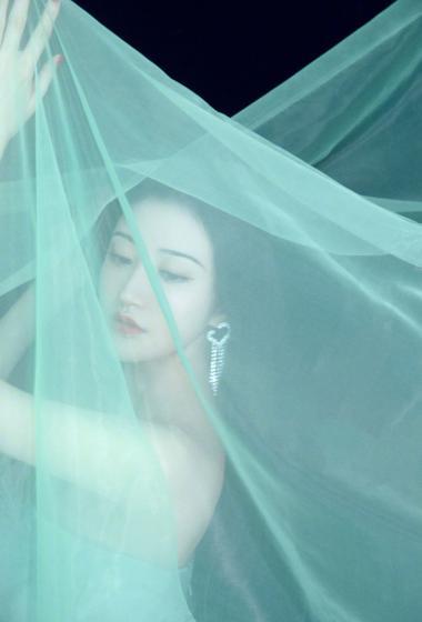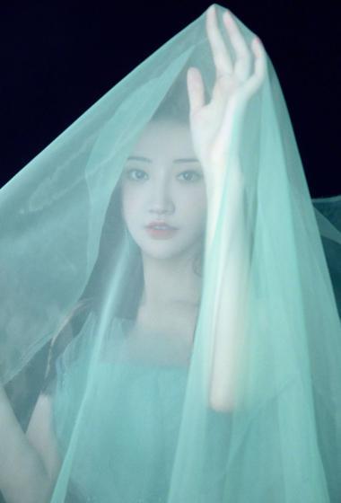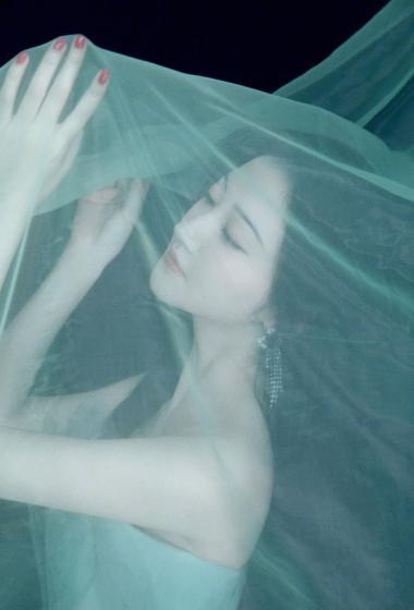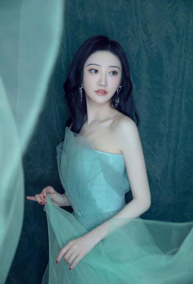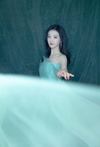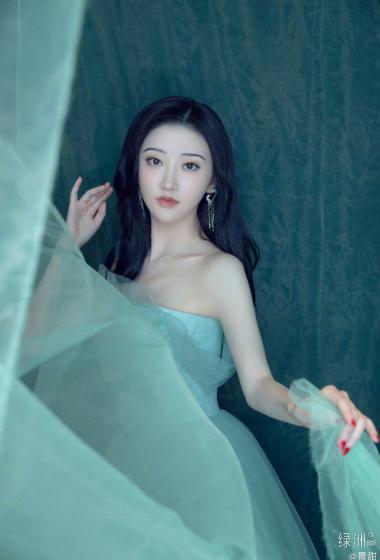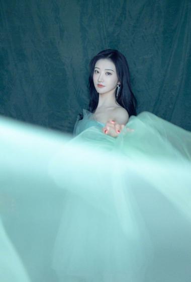 美女景甜蓝色薄纱露肩裙装仙气飘飘【11P】