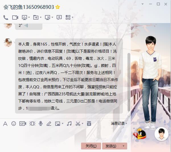 购买前看一下这个帖子,减少踩坑概率 【寻欢细节】:今天约了这个MM,在三元里地铁站正上面,不过MM发过来的地址是“御龙国际商寓”,实际上大厦写的是“御龙服装城”这里有点误导了我,进入比较方便,MM是一个人自己住的, 里面环境不错,160左右,年纪30加,身材不错,腿长,波大。颜值过行,早几年应该是个美女,洗澡时发现浴室里的东西都是男性用品,沐浴露之类都是男性专用的,这点不错,服务还行,仔细检查了MM的身体,年纪虽然30+,但是没有生过孩子,洗完之后用一次性毛巾擦身,我第一次见到这种东西,体积很小,但打开原来是条毛巾,真想不到。之后开始服务,服务不错,有写都有做,技术比较好。口交超服务,做完服务后开始爱,下面长得比较漂亮,穴口毛不多,穴紧紧闭着,挺好看的,MM帮我上套,套子上面是有突出来的那种套,看来MM比较…………,之后几个姿势啪啪啪,突然想起MM是可以射颜的,再和MM确定一次,说可以,所以干到差不多有感觉就拨出脱套射MM面上,真他妈爽。 总结一下吧,MM颜值中等,身材不错,年纪30+,态度,技术都非常不错,而且可以射颜,300一Q性价比还行,不过射颜要加100,看看有没有喜欢这个的,喜欢的可以去 【附带照片】:
