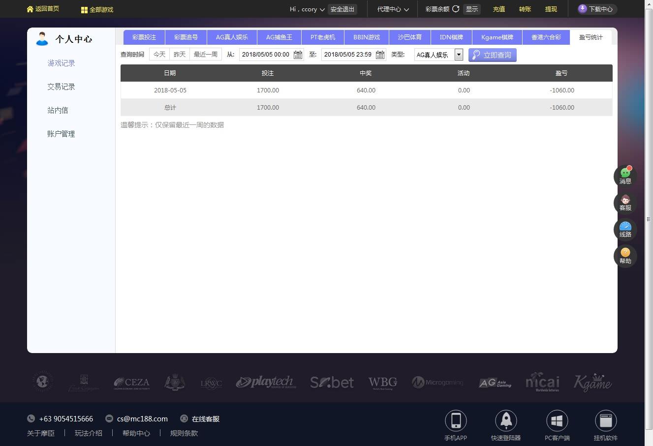 5月5日摩臣AG输1060元 |
